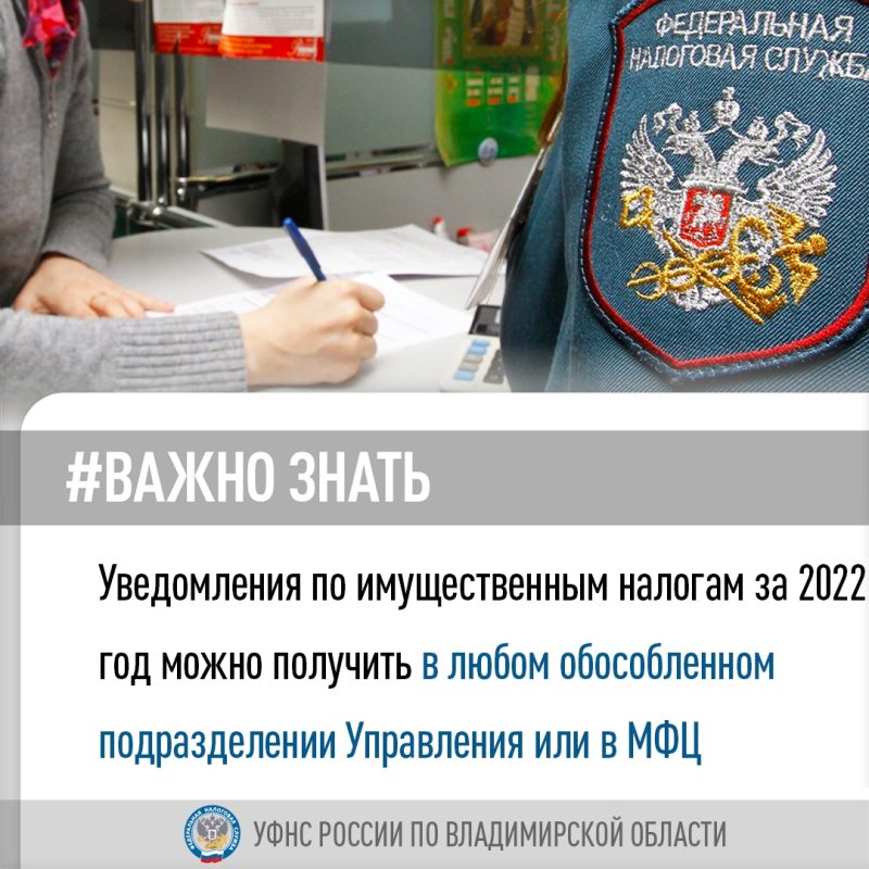 УФНС России по Владимирской области информирует, что налоговые уведомления налогоплательщика – физического лица можно получить в любом обособленном подразделении налоговой службы, обслуживающем физических лиц и в Многофункциональных центрах (МФЦ) в случае их неполучения по почте. ✅Во Владимирской области прием и обслуживание налогоплательщиков осуществляется в следующих обособленных подразделениях: – г. Владимир, 1-ый Коллективный проезд, д. 2-а;…